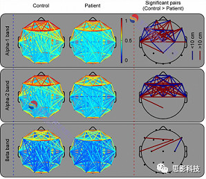 4. 功能連通性分析:通過(guò)直接計(jì)算時(shí)域信號(hào)間pearson相關(guān)、頻域相干、相位差以及格蘭杰因果等指標(biāo),構(gòu)建對(duì)應(yīng)的功能連通性矩陣、繪制功能連接圖并統(tǒng)計(jì)差異。