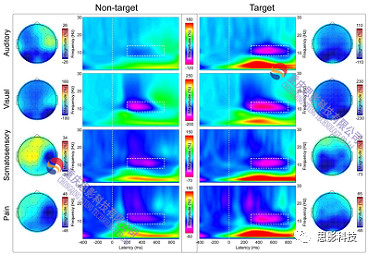 3. 頻域/時(shí)頻域分析:通過(guò)快速傅立葉變換(FFT),短時(shí)傅里葉變換(STFT),小波變換(CWT)等方式將時(shí)域信號(hào)轉(zhuǎn)換成頻域/時(shí)頻域信號(hào)、繪制頻域/時(shí)頻域分布圖和地形圖并通過(guò)不同方式提取感興趣時(shí)頻段的振幅信息進(jìn)行進(jìn)一步統(tǒng)計(jì)分析。