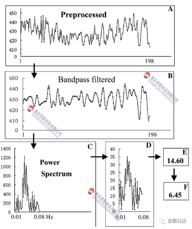 通過傅立葉變換,計算血液動力學相關的特定頻率段(如0.01~0.08Hz)的振幅信息,可以反應大腦局部活動強度。
