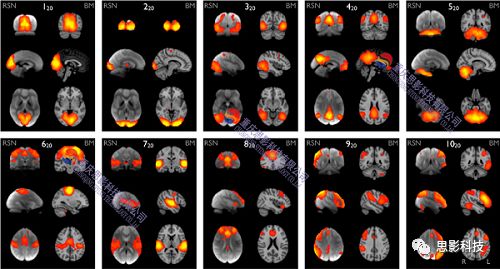 通過盲源分離算法,在組水平上計算出時間上相互獨立的體素集合,來找出具有功能一致性的大腦區(qū)域,以此界定不同的腦功能網(wǎng)絡。