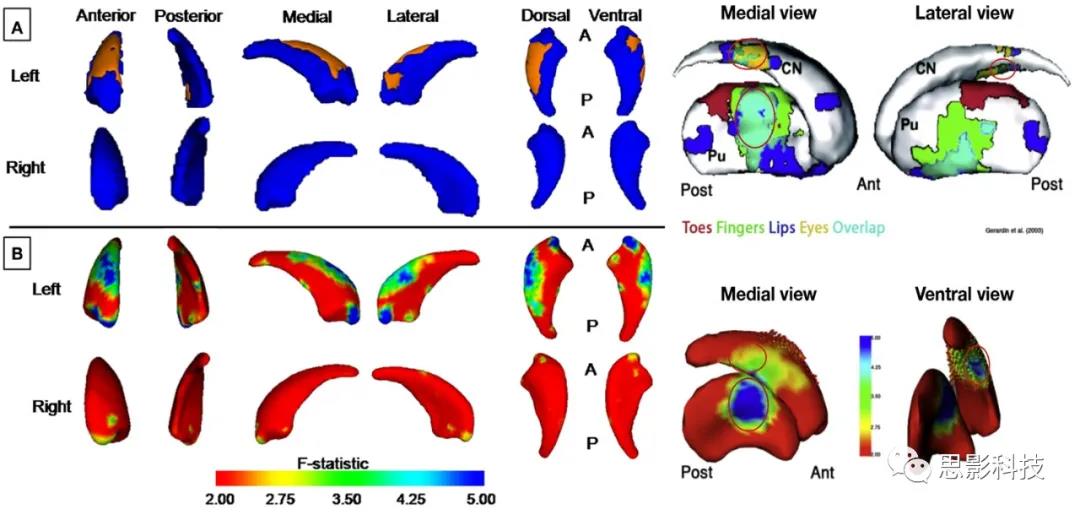 1、用FSL軟件分割皮下結構(包括海馬、杏仁核、丘腦、蒼白球、殼核等),重構皮下核團表層,在表層上做基于頂點的shape統(tǒng)計分析。