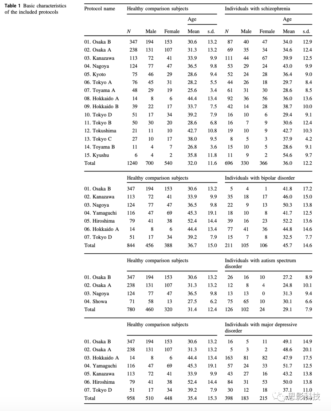 本研究是由日本COCORO(認知遺傳學合作研究組織)聯(lián)合會發(fā)起的一項大型、多中心、橫斷面的研究,通過采用類似于Kelly研究使用的mega分析方法對健康對照(HCS)與精神分裂癥、雙相情感障礙、孤獨癥譜系障礙以及抑郁障礙患者之間白質(zhì)微結(jié)構差異進行研究。該方法已經(jīng)顯示精神分裂癥患者與HCS相比,白質(zhì)微結(jié)構存在差異。作為一項新的工作,本研究探索了四種主要精神疾病中共有和特有的白質(zhì)微結(jié)構改變。該研究的第一個目標是能夠重復Kelly等人的發(fā)現(xiàn)。第二個目標則是研究HCS與精神分裂癥、雙相情感障礙、自閉癥譜系障礙和抑郁障礙患者白質(zhì)微結(jié)構的異同。