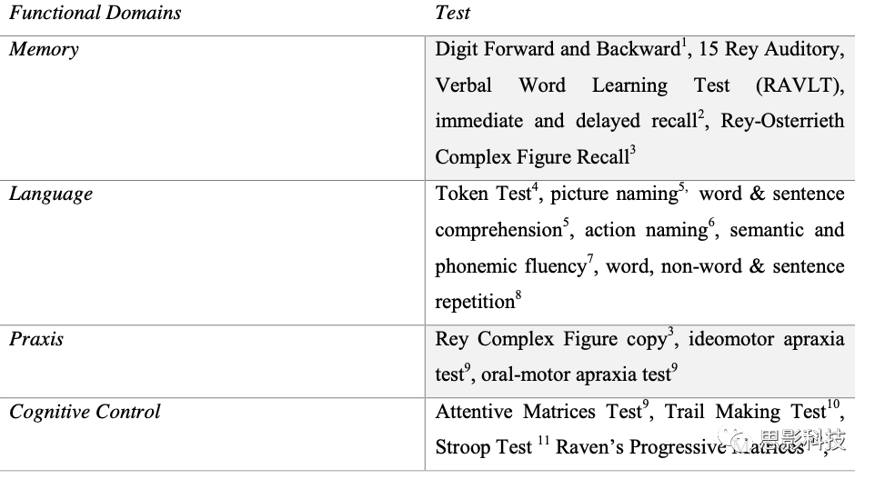 補充表1. 神經(jīng)心理測試項目