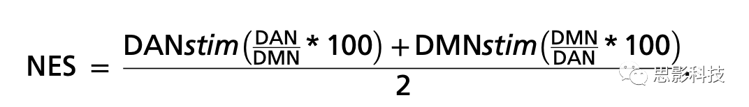 本文還檢查了TMS后特定網絡激活程度是否與認知能力的個體差異有關。為此,通過簡單計算每種刺激條件下,TMS誘發(fā)刺激的網絡活動相對于非刺激網絡的平均百分比來量化NES,NES用于網絡特定性和認知得分之間的雙變量相關性計算,如下所示: