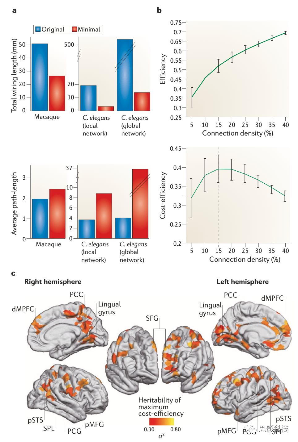 c雙生子研究發(fā)現(xiàn),在全局和節(jié)點(diǎn)水平最大的成本-效益是可遺傳的,其中連接hub成本效率的遺傳力最高。