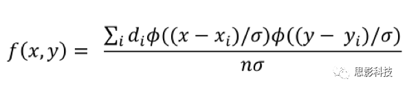 為了生成密度圖,使用了二維核密度估計,這是在R MASS包(1)的kde2d函數(shù)中實現(xiàn)的。根據(jù)以下公式計算均勻網(wǎng)格(寬度=80,高度=60)上任何點(x,y)跨越所呈現(xiàn)圖像(800×600像素)維度的核密度估計: