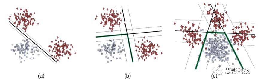 圖(c),使用3個分類器構(gòu)建的凸多邊形捕獲了3種亞型。(Varol E, Sotiras A, Davatzikos C. Alzheimer’s Disease Neuroimaging I. HYDRA: revealing heterogeneity of imaging and genetic patterns through a multiple max-margin discriminative analysis framework. NeuroImage 2017; 145: 346–64.)