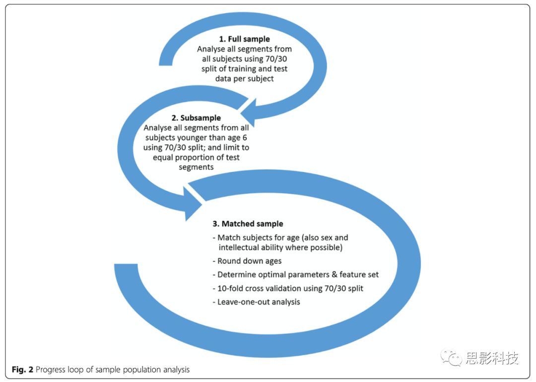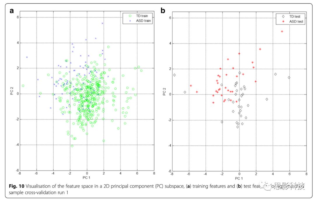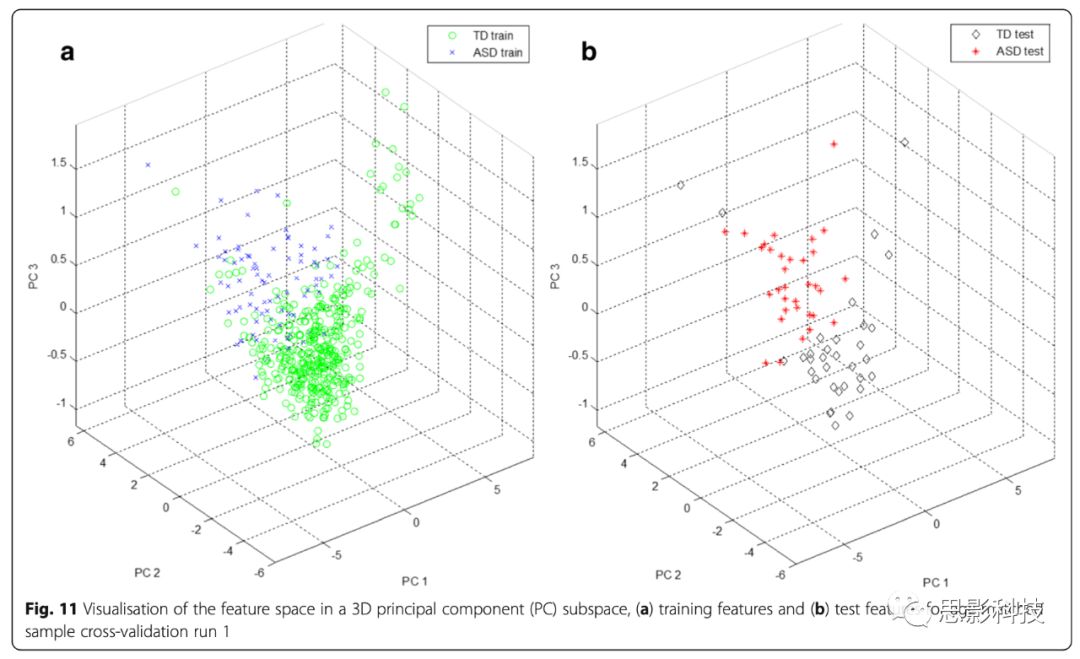 研究結(jié)果:在年齡匹配樣本中,從TD中區(qū)分出ASD,使用非線性支持向量機(jī)(SVM)分類器的留一分類法結(jié)果顯示92.9%準(zhǔn)確率,100%敏感性和85.7%特異性。將年齡、性別、智力水平以及每組訓(xùn)練和測(cè)試部分的數(shù)據(jù)數(shù)量定義為可能的人口和技術(shù)混淆因素。一致的重復(fù)性(正確識(shí)別每個(gè)被試的所有時(shí)間段)仍是個(gè)挑戰(zhàn)。