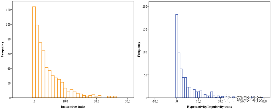 圖S1 樣本中注意力不集中和多動(dòng)/沖動(dòng)性特征的分布
