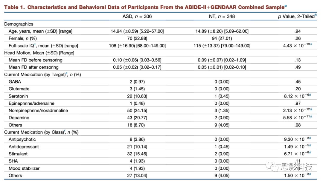 表一來自ABIDE-II和GENDAAR混合樣本中被試的特征和行為數(shù)據(jù)