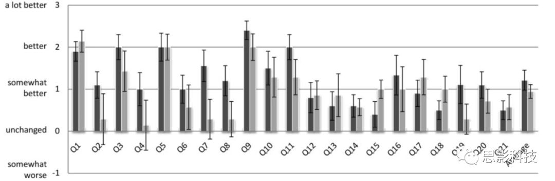 除此以外,在治療后,作者還對這些被試以及他們的家屬分別進行了相同問題的調(diào)查問卷。問卷內(nèi)容如下(分數(shù)從-3到3,即七度量表):