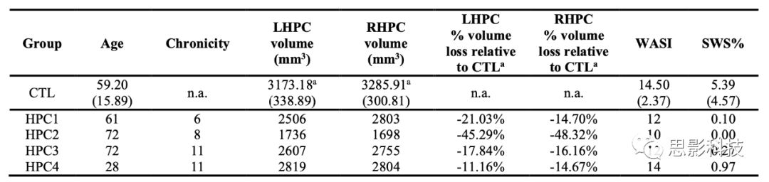 被試:4名選擇性/局灶性雙側(cè)海馬損傷的記憶障礙患者,10名與患者相匹配(人口學(xué)因素:年齡、性別、體重指標(biāo)和非語言IQ)的健康被試作為對(duì)照組。根據(jù)患者選擇性病變和神經(jīng)心理特征選擇被試,從T2-weighted像中手動(dòng)分割海馬體,結(jié)果顯示相對(duì)于健康對(duì)照組,4名患者具有很大的海馬體積損傷(FigureS1和TableS1)。并且神經(jīng)檢測證明患者海馬外無損傷,基于全腦體素的自動(dòng)形態(tài)學(xué)顯示患者和對(duì)照組在大腦其他地方?jīng)]有體積差異。選擇患有LGI1 VGKC-complex antibody LE的罕見局灶性海馬病變患者,使研究者能夠確定海馬在睡眠生理機(jī)制中的直接作用,而不受與病因異質(zhì)性相關(guān)的潛在因素干擾。患者無癲癇或使用癲癇藥物,也沒有接受低鈉血癥的治療,因此,與LGI1 VGKC-complex antibody LE初始表現(xiàn)相關(guān)的其他特征-如局灶性癲癇發(fā)作和下丘腦損傷相關(guān)的低鈉血癥-也不太可能解釋該研究效應(yīng)。