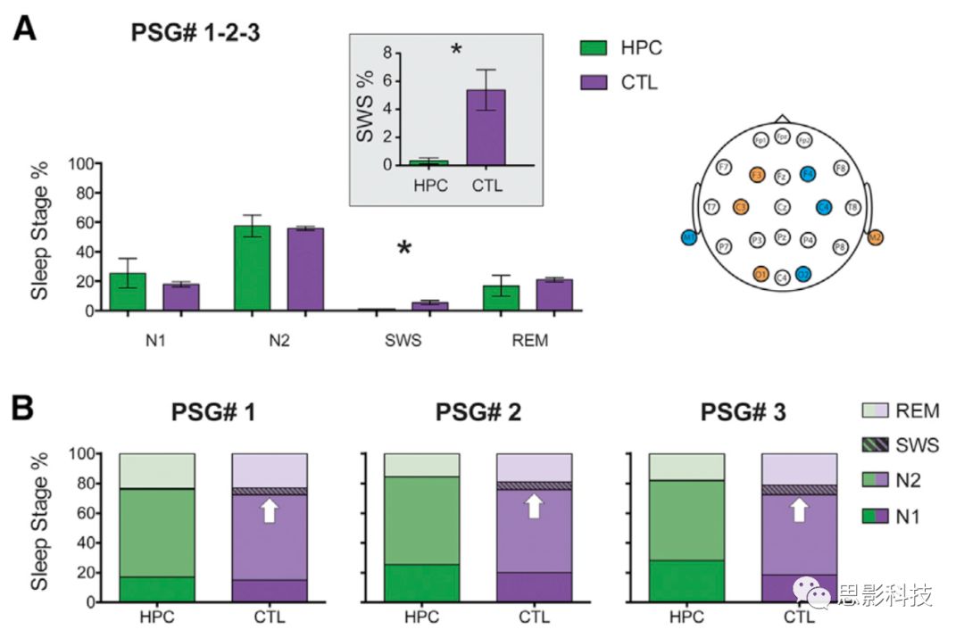 該研究結(jié)果證明局灶性雙側(cè)海馬損傷與睡眠結(jié)構(gòu)斷裂有關(guān),表現(xiàn)為SWS和SWA的減少,以及在SO周期結(jié)束時(shí)快速紡錘體的明顯時(shí)間誤差。這表明,海馬體在睡眠生理機(jī)制中起重要作用,并且海馬體是情景記憶正常運(yùn)作所必需的。