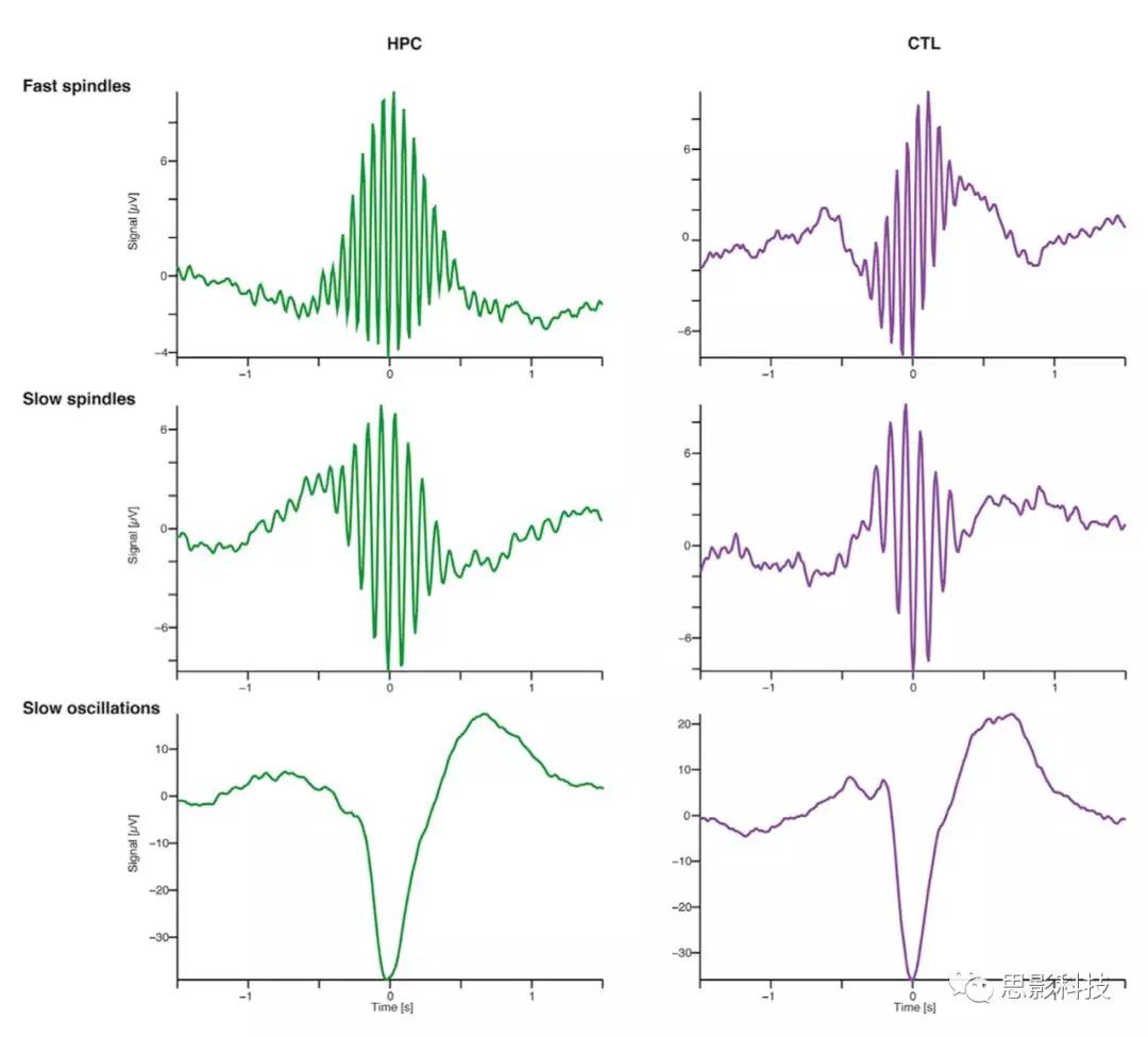 圖3:患者和健康對(duì)照組在N2睡眠階段的睡眠相關(guān)振蕩的例子。結(jié)果表明,這些睡眠標(biāo)記的特征(形狀和振幅)在兩組之間是相似的。