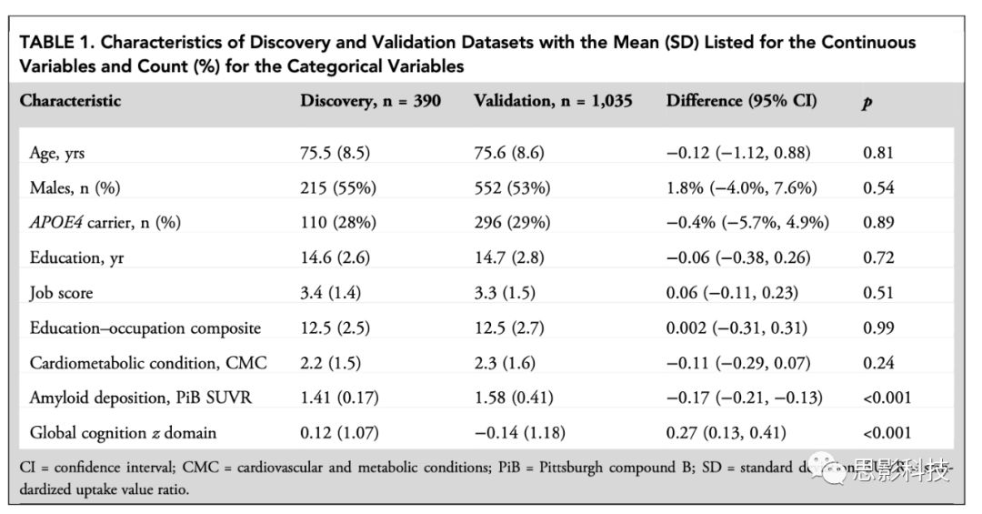 驗證數(shù)據(jù)集:共1035例60歲以上被試,均有血管健康指標以及部分影像數(shù)據(jù)(PIB-PET和DTI)。其中869例認知正常,144例輕度認知下降,16例癡呆(12例AD,1例混合性癡呆,1例血管性癡呆,1例路易體癡呆,1例進行性核上性麻痹),6例診斷不明確。