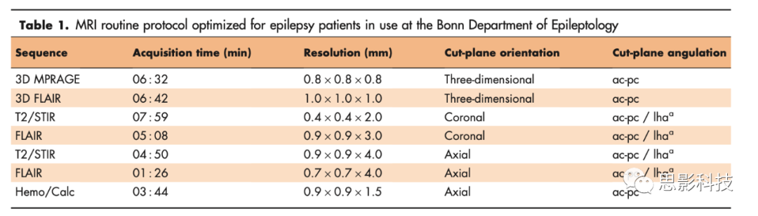 Epileptology使用,旨在滿足癲癇檢查的基本成像需求:作為術(shù)前評估的一部分,2740例患者MRI確定的致癇灶中,有2724例(99.4%)可以通過六種序列檢測到:3D-T1WI、含鐵血黃素、鈣化敏感序列和2D-FLAIR和T2WI序列,后兩者平行海馬長軸和前后連合連線。值得注意的是,2D-FLAIR序列檢出了84.8%的致癇灶,是靈敏度最高的序列。因此,添加3D-FLAIR用于解剖定位,并作為后處理的輸入數(shù)據(jù)。