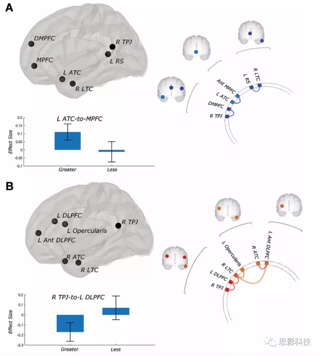 Ant DLPFC=anterior dorsolateral prefrontal cortex(前部背外側(cè)前額葉皮質(zhì));ATC =anterior temporal cortex(前顳葉皮層);DLPFC =dorsolateral prefrontal cortex(背外側(cè)前額葉皮層);DMPFC = dorsomedial prefrontal cortex(背內(nèi)側(cè)前額葉皮層);L =左;LTC =lateral temporal cortex(外側(cè)顳葉皮層);MPFC =medial prefrontal cortex(內(nèi)側(cè)前額葉皮質(zhì));TPJ=temporoparietal junction(顳頂交界處);R =右;RS = retrosplenial cortex(壓后皮層)。