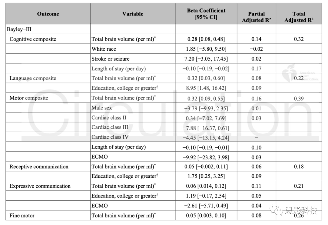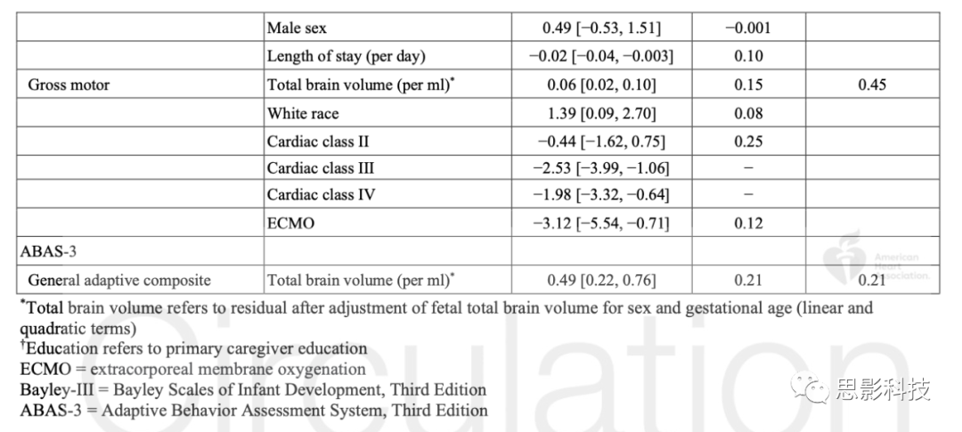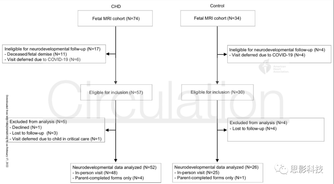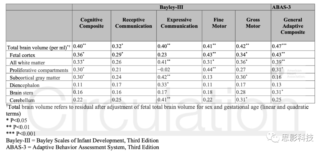 結論:較小的胎兒腦體積是2年神經(jīng)發(fā)育評估結果的一個有力的獨立預測因子,可能是評估CHD未來神經(jīng)發(fā)育風險的重要影像學生物標志物。未來的研究需要支持這一假設。我們的研究結果支持將胎兒腦體積納入風險分層模型,并將其作為胎兒神經(jīng)保護干預研究的可能結果。本文發(fā)表在Circulation雜志。(可添加微信號siyingyxf或18983979082獲取原文,另思影提供免費文獻下載服務,如需要也可添加此微信號入群,原文也會在群里發(fā)布)。