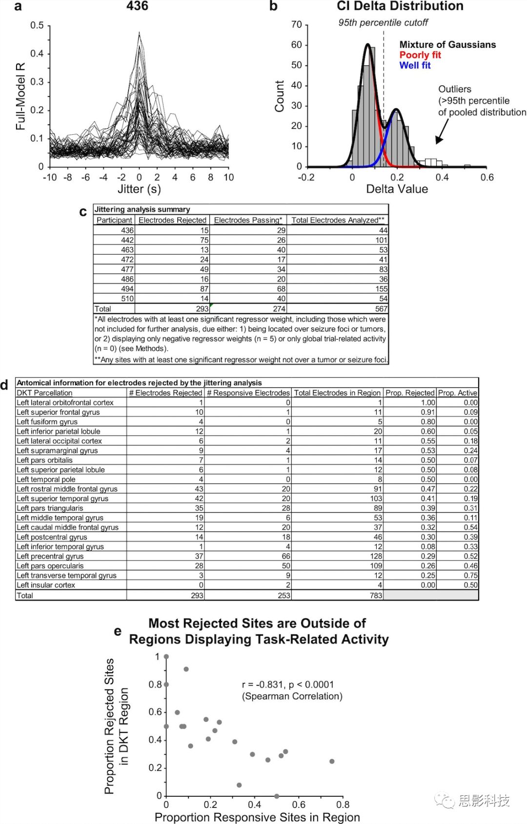 d,報告了被抖動分析拒絕的電極解剖位置和在CI任務(wù)中顯示顯著活動的電極。