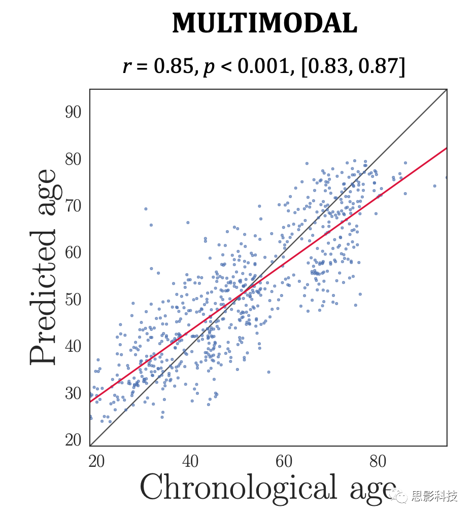 SI圖9:多模態(tài)模型的預測年齡和實際年齡之間的關(guān)聯(lián)
