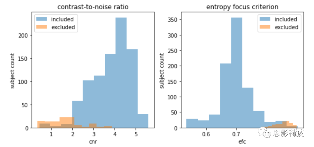 圖S7. 解剖掃描的圖像質(zhì)量指標(MRIQC)。109名被排除的被試的組織分割不準確。