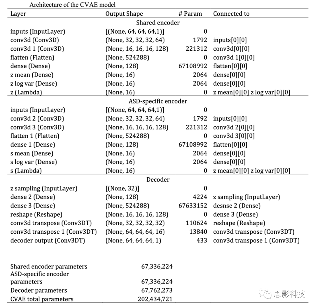 作者使用ABIDE I數(shù)據(jù)集中的fMRI圖像分別訓練一個CVAE和一個非對比VAE,使用到的數(shù)據(jù)包括470名ASD被試和512名TC(典型控制組)被試。非對比VAE有一組潛在特征,但在參數(shù)數(shù)量和潛在特征數(shù)量上與CVAE匹配。非對比VAE允許測試神經(jīng)解剖學和ASD癥狀之間的關聯(lián)是否可以單獨使用VAE來識別,而不分離ASD特異性和共享變異。