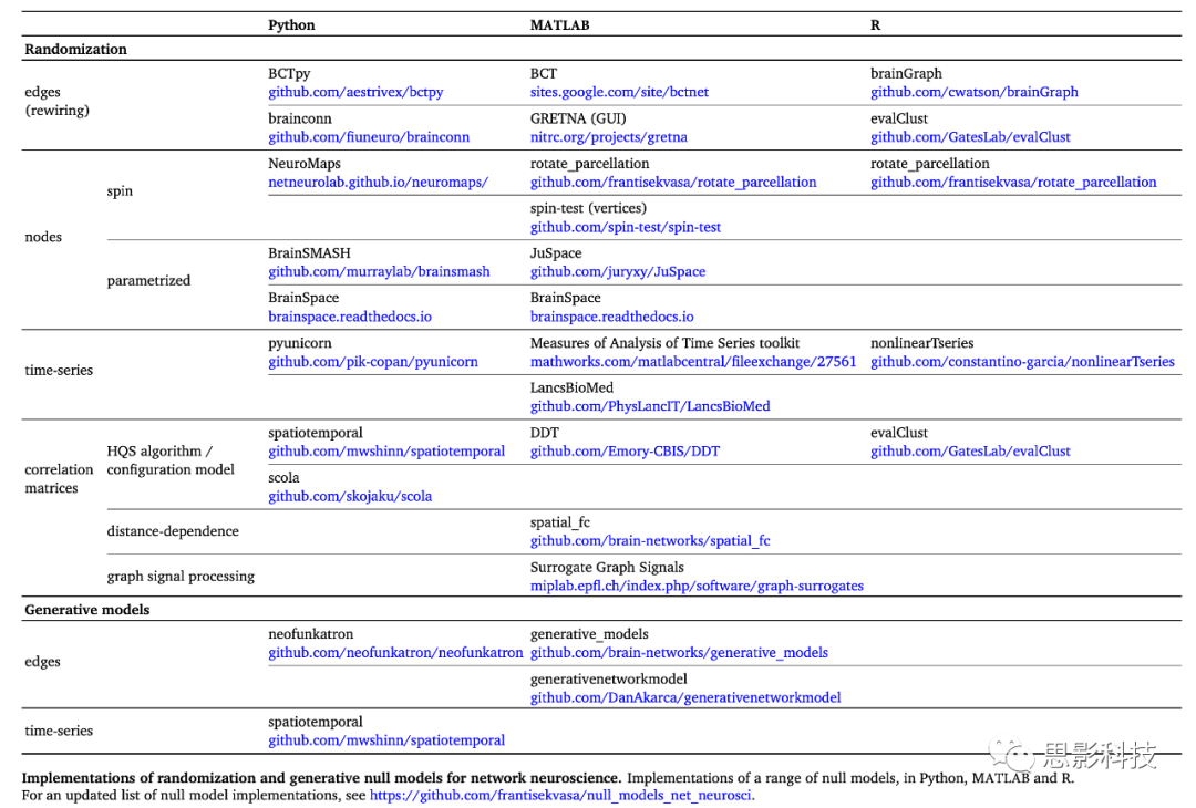 從更務(wù)實(shí)的角度來(lái)看,對(duì)多個(gè)零模型的結(jié)果進(jìn)行標(biāo)準(zhǔn)化報(bào)告將促進(jìn)更全面的科學(xué)交流。我們鼓勵(lì)讀者在自己的工作中探索這些方法;補(bǔ)充表1顯示了Python、MATLAB和R編程語(yǔ)言中各種隨機(jī)化和生成零模型的現(xiàn)有研究。展望未來(lái),零模型為公開(kāi)地共享方法和協(xié)調(diào)分析框架提供了特有的機(jī)會(huì)。反過(guò)來(lái)說(shuō),這也將促進(jìn)零模型方法的廣泛使用和持續(xù)發(fā)展。