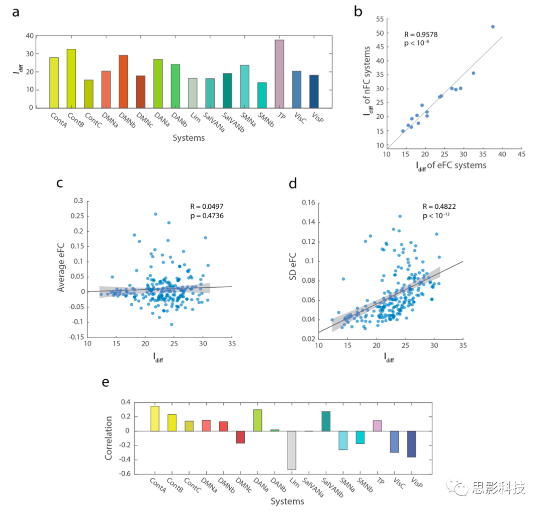 (e)16個典型的大腦系統(tǒng)Idiff與eFC集群的相關(guān)性。所有的分析都是使用MSC 200節(jié)點分區(qū)法進(jìn)行的。