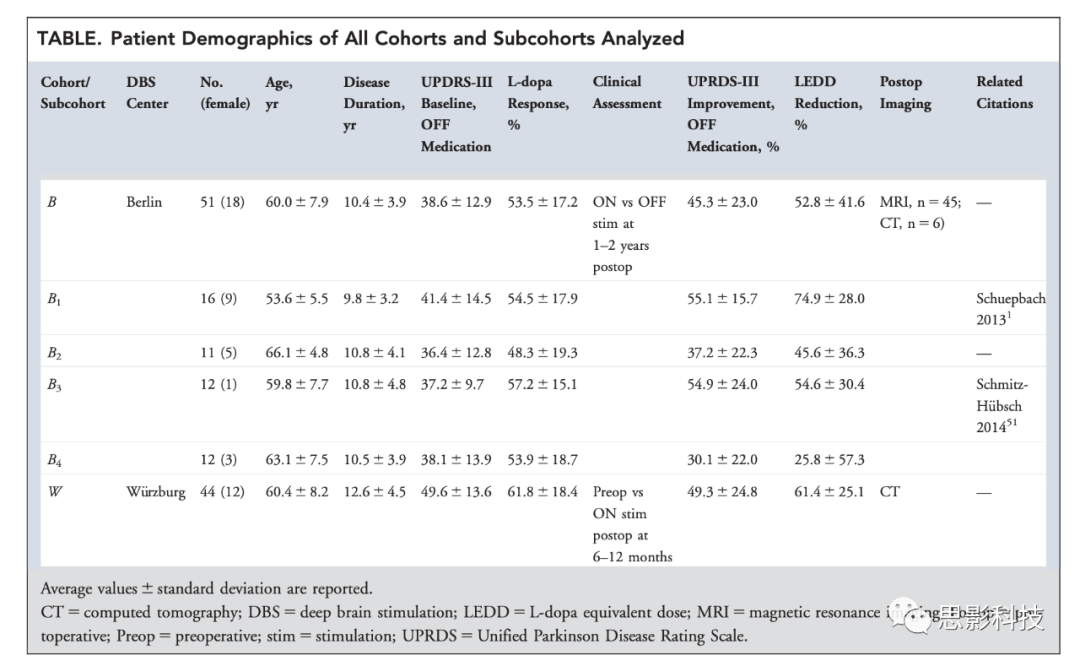 所有患者(兩個數(shù)據(jù)集)均因PD接受DBS手術(shù),并接受2個四端DBS電極(model 3389; Medtronic, Minneapolis, MN )。所有患者均接受了術(shù)前MRI和神經(jīng)心理學(xué)測試,以排除結(jié)構(gòu)性或嚴重精神并發(fā)癥。在手術(shù)過程中,進行微電極記錄以驗證導(dǎo)線的位置。在單變量分析中,記錄并測試了臨床變量,包括年齡、性別、術(shù)前疾病持續(xù)時間、術(shù)前左旋多巴反應(yīng)(在統(tǒng)一帕金森病評定量表[UPDRS]-III ON vs OFF上的改善百分比)以及基線時的左旋多巴等效劑量(LEDD)對臨床療效的預(yù)測價值。