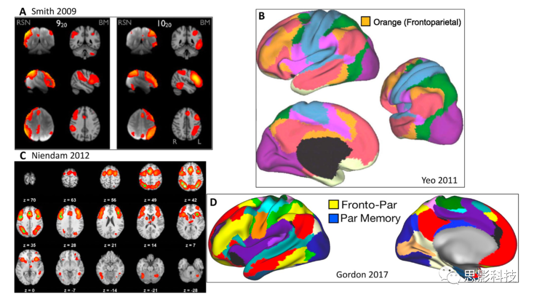 值得注意的是,不同的網(wǎng)絡(luò)定義和節(jié)點(diǎn)選擇過程可能會(huì)在文獻(xiàn)中造成混淆。在網(wǎng)絡(luò)構(gòu)建過程中,大腦區(qū)域和特殊種子(感興趣區(qū)域,ROI)選擇的不同命名慣例會(huì)進(jìn)一步導(dǎo)致網(wǎng)絡(luò)神經(jīng)科學(xué)文獻(xiàn)中明顯的不一致。