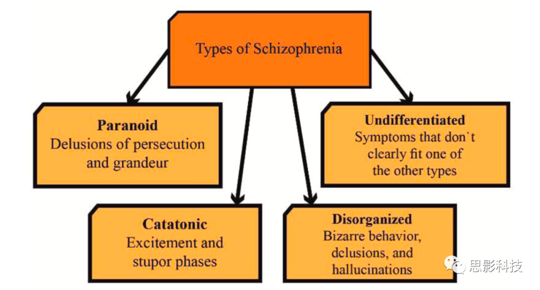 與其他精神或認(rèn)知障礙疾病一樣,SZ存在多種類型。這些類型包括偏執(zhí)型、青春型(或無(wú)組織型精神分裂癥)、緊張型、殘余型和未分化型。偏執(zhí)型是SZ最常見(jiàn)的類型之一。在2013年,美國(guó)精神病學(xué)協(xié)會(huì)(APA)認(rèn)為偏執(zhí)性SZ并非獨(dú)立的疾病,并將其納入SZ范疇。青春型SZ已從DSM-5中移除,但仍被國(guó)際疾病和相關(guān)健康問(wèn)題統(tǒng)計(jì)分類(ICD-10)所確認(rèn)。未分化型SZ患者表現(xiàn)出多種SZ癥狀。殘余型SZ患者癥狀較輕。緊張型SZ在DSM的早期版本中有介紹,但在DSM-5中被取消。鑒于這種癥狀在正常情況下發(fā)生,DSM-5將其歸類為SZ。圖2展示了不同的SZ類型及其特點(diǎn)。