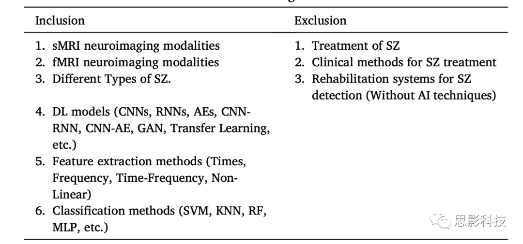 表1.SZ診斷相關(guān)論文的排除和納入標(biāo)準(zhǔn)