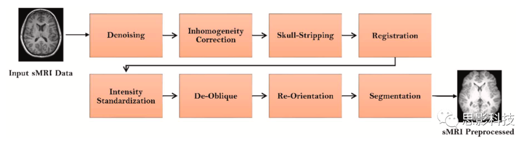 對(duì)于專家來(lái)說(shuō),sMRI模態(tài)的分析既復(fù)雜又耗時(shí)。sMRI模態(tài)預(yù)處理的最重要步驟如下: