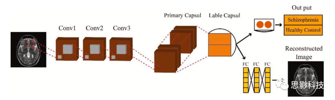 D. CapsNet CapsNet是一種使用膠囊結(jié)構(gòu)的神經(jīng)網(wǎng)絡(luò),旨在解決傳統(tǒng)CNN的不足之處。在CNN中,卷積層和池化層僅捕捉特征的出現(xiàn)情況,而膠囊層則可以捕捉特征的出現(xiàn)位置、方向和縮放程度等信息。這些膠囊由一組神經(jīng)元組成,其中一個(gè)神經(jīng)元作為膠囊的“活躍度”,表示該膠囊是否包含特征。CapsNet還使用了動(dòng)態(tài)路由算法來(lái)計(jì)算膠囊之間的關(guān)系,以獲得更準(zhǔn)確的特征表示。CapsNet已在許多任務(wù)中顯示出優(yōu)異性能,如圖像分類和物體識(shí)別。在SZ的自動(dòng)診斷中,CapsNet已被用于MRI圖像的分類和分割任務(wù)。