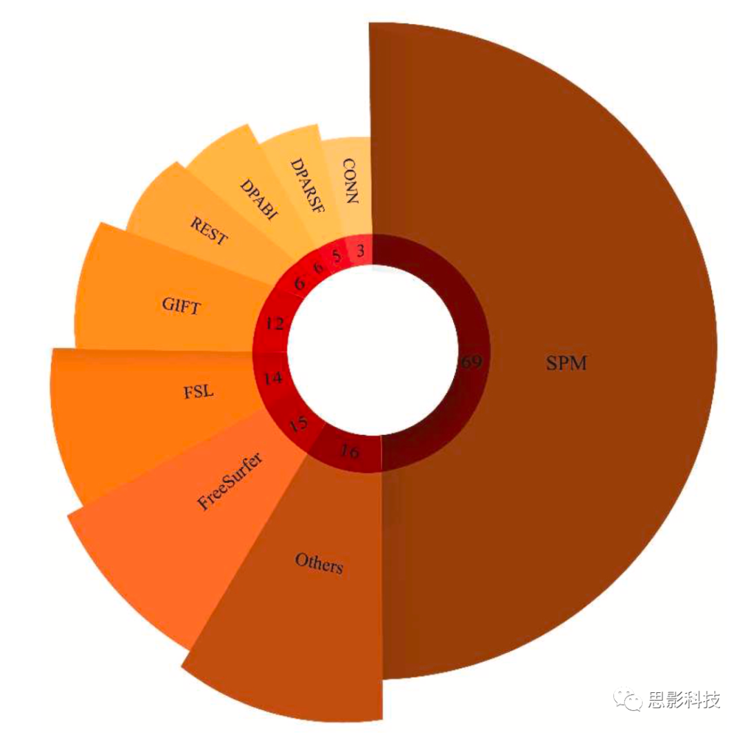 sMRI和fMRI模態(tài)的預(yù)處理是SZ自動(dòng)檢測(cè)的重要步驟。預(yù)處理技術(shù)分為低水平和高水平方法,在前面的章節(jié)中有詳細(xì)描述。使用sMRI或fMRI模態(tài)的低水平預(yù)處理具有特定的標(biāo)準(zhǔn)步驟,FSL、BET、FreeSurfer和SPM工具已被引入低水平預(yù)處理。用于SZ自動(dòng)診斷的預(yù)處理工具數(shù)量如圖18所示。從圖中可以看出,研究人員廣泛使用SPM工具。