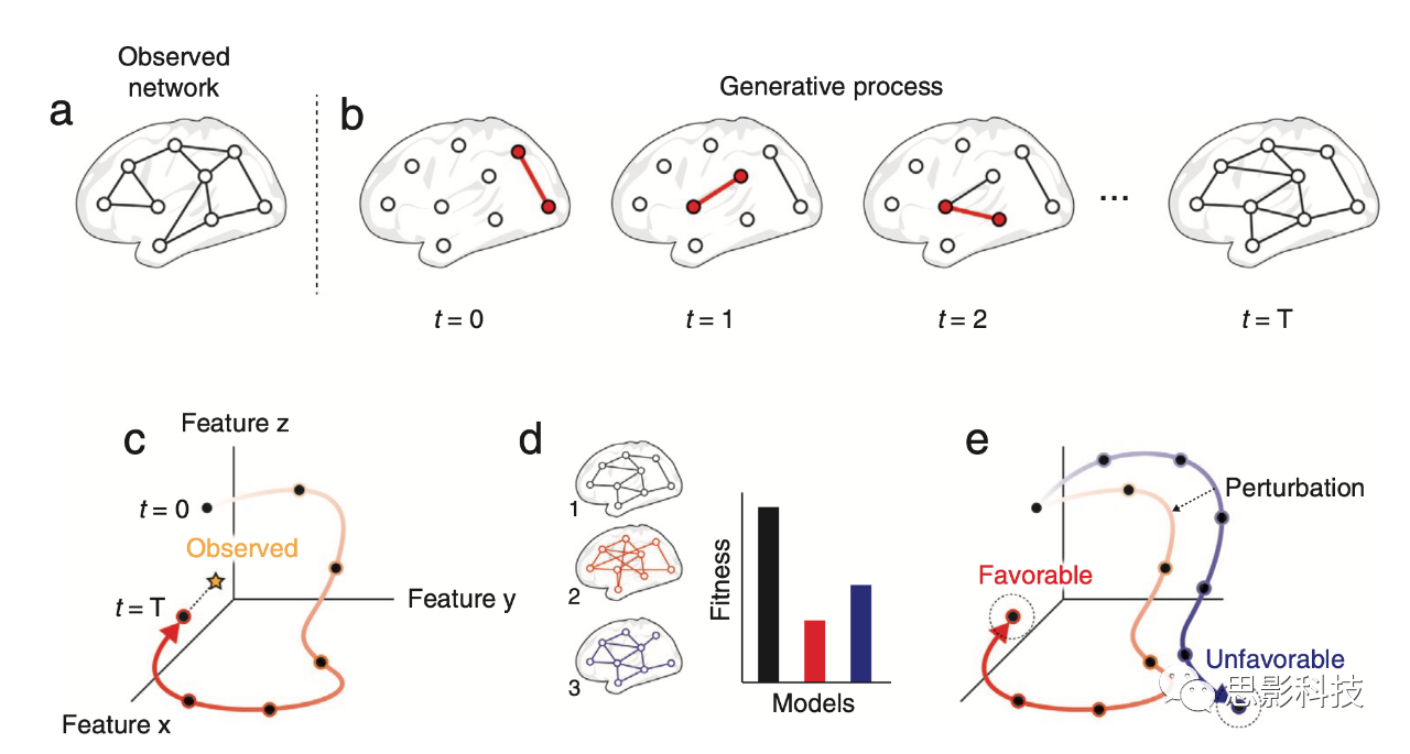 網(wǎng)絡(luò)神經(jīng)科學(xué)的吸引力部分在于使用不斷增長的概要統(tǒng)計工具套件來量化大腦組織的不同方面的能力。正如前面所提到的,這些測量可以診斷有影響力的節(jié)點(diǎn),發(fā)現(xiàn)社區(qū),并評估網(wǎng)絡(luò)進(jìn)行有效信息傳輸?shù)哪芰?。然而,網(wǎng)絡(luò)概要統(tǒng)計只是描述和總結(jié)網(wǎng)絡(luò)。也就是說,概要統(tǒng)計并不能解釋為什么網(wǎng)絡(luò)具有某種特征,或者這種特征是如何首次出現(xiàn)的。要了解網(wǎng)絡(luò)增長和演化的過程、規(guī)則和算法,需要構(gòu)建、測試和驗證生成模型。