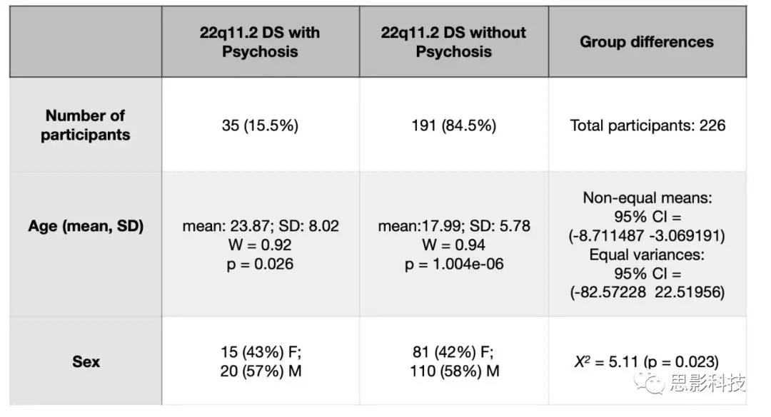 表S2b:伴或不伴精神障礙22q11DS信息