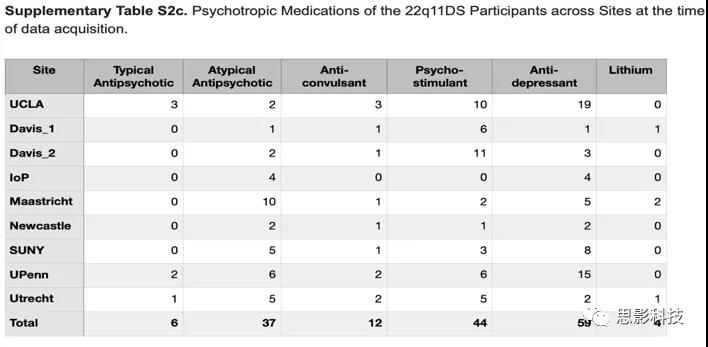 表S2c:各中心掃描時22q11DS的精神用藥情況