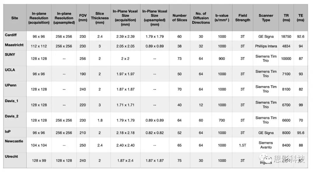 影像獲取與處理:各中心dMRI和TI加權MRI掃描參數(shù)在補充材料(表S4和S5)中。表S4:dMRI參數(shù)
