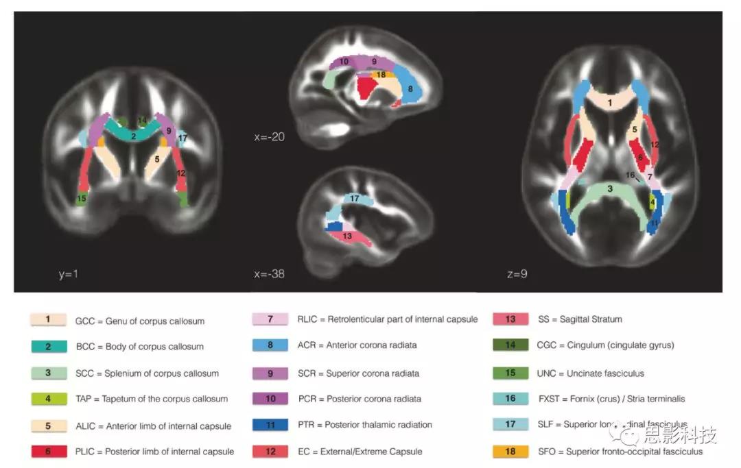 圖1:JHU-ICBM白質圖譜本研究ROI