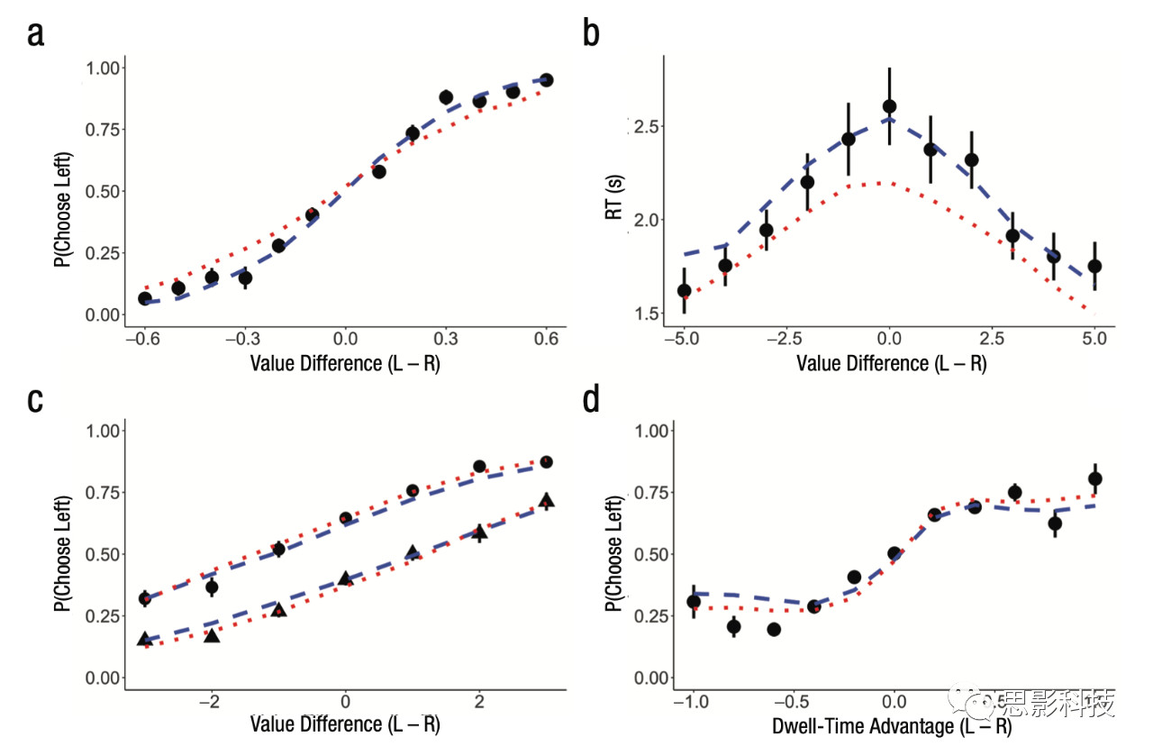 總之,這項(xiàng)研究表明,注意力選擇背后的機(jī)制并不是簡(jiǎn)單地增加被注視選項(xiàng)所積累的證據(jù),而是考慮到選項(xiàng)的價(jià)值的更復(fù)雜的交互作用,特別是在來(lái)自大量熟悉刺激的選項(xiàng)時(shí)。