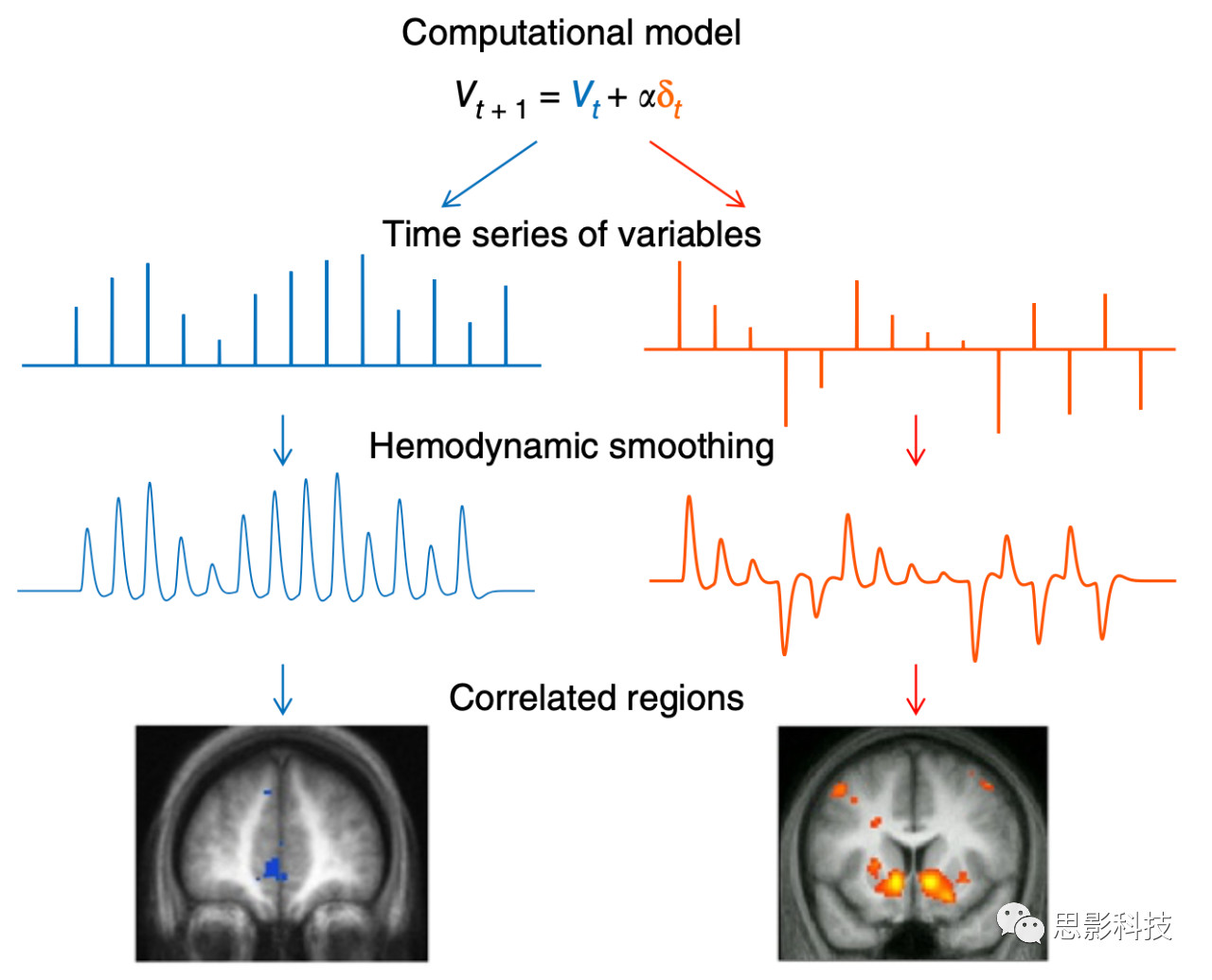 基于模型的分析 fMRI中計(jì)算模型的關(guān)鍵用途是定義感興趣的假設(shè)信號(hào)。接近外圍的過程(例如視覺感知)通常涉及具體的,可量化的變量,這些變量相對(duì)容易概念化、操縱和度量。 例如,與測(cè)試更抽象的構(gòu)造(例如預(yù)測(cè)誤差或置信度)相比,如何設(shè)計(jì)實(shí)驗(yàn)來測(cè)試大腦區(qū)域參與彩色視覺的過程似乎會(huì)更清楚。其優(yōu)點(diǎn)不僅在于色彩的方式更加直觀,而且視覺心理學(xué)和神經(jīng)科學(xué)長(zhǎng)期以來一直由堅(jiān)實(shí)的計(jì)算理論(通過信號(hào)檢測(cè)理論等形式主義)作指導(dǎo)。這些理論最初來自工程學(xué),但如今已根深蒂固于實(shí)驗(yàn)設(shè)計(jì)和分析中,它們指出了感知實(shí)驗(yàn)的關(guān)鍵步驟以及如何評(píng)估其操作。